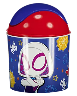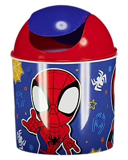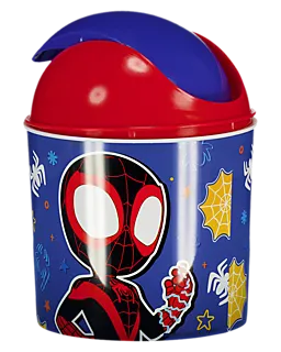 Dieser Mülleimer hat ein buntes Design mit Spiderman-Motiv und einen rot-blauen Deckel. Die fröhlichen Figuren und die klaren Farben machen ihn praktisch fürs Kinderzimmer. Das runde Modell hat einen Klappdeckel, sodass du Abfall einfach entsorgen kannst und das Zimmer ordentlich bleibt. Das stabile Gehäuse aus Kunststoff lässt sich leicht reinigen.