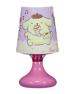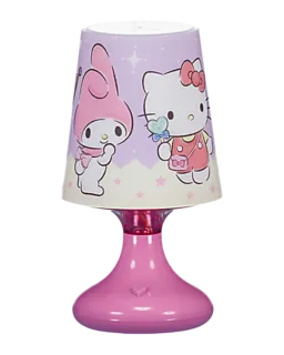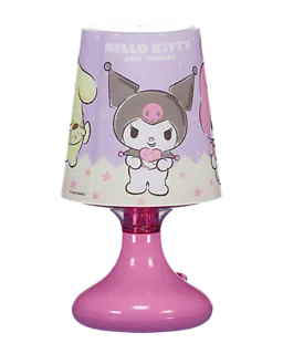 Nachtlampe mit einem stabilen rosa Fuß und einem Schirm mit einem fröhlichen Aufdruck von bekannten Comicfiguren in sanften Farben. Auf dem Schirm sind unter anderem eine weiße Katze mit Schleife und eine Figur mit Hasenohren zu sehen. Gibt ein weiches Licht ab, ideal fürs Kinderzimmer oder als zusätzliche Stimmungsbeleuchtung. Passt durch das verspielte Design gut zu verschiedenen Einrichtungsstilen.