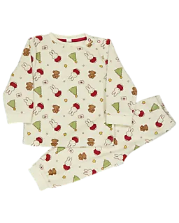Dieser beige Nijntje Baby-Schlafanzug ist aus weichem Velours gemacht und fühlt sich angenehm auf der Haut an. Das Oberteil hat lange Ärmel und Druckknöpfe an der Schulter, damit man es leicht an- und ausziehen kann. Die rote Schlafanzughose ist lang, damit die Beine gut warm bleiben.