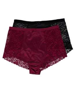 Dieses Set enthält zwei Damenslips in Rot und Schwarz. Die Slips sind aus weichem Satin gefertigt und haben seitliche Spitzendetails. Durch die Verwendung von recyceltem Polyamid und Elasthan fühlt sich das Material geschmeidig an. Vorne ziert ein kleines Schleifchen den Slip. Die Slips sind bequem und eignen sich für den täglichen Gebrauch.