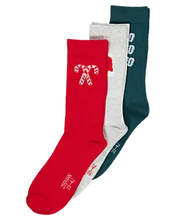 Dieses Set enthält drei Paar Herrensocken in Rot mit Zuckerstangenmuster, Hellgrau und Dunkelgrün. Sie bestehen aus 66% Baumwolle, 31% Polyester und 3% Elasthan. Die Socken fühlen sich weich an und haben eine bequeme Passform. Durch die Mischung aus neutralen und festlichen Farben lassen sie sich gut kombinieren und abwechseln. Geeignet für den täglichen Gebrauch an den Feiertagen und auch danach.
