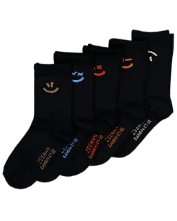 Set aus fünf Paar Socken mit verschiedenen Smileys auf der Oberseite. Die Socken bestehen aus Viskose aus Bambus, Polyester und Elasthan. Dadurch haben sie eine weiche, bequeme Passform. Praktisch und einfach zu kombinieren mit jedem Outfit.