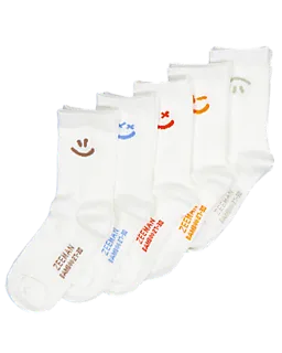 Dieses Set besteht aus fünf Paar weißen Socken mit verschiedenen Smileys oben. Sie sind aus einer weichen Mischung aus Bambusviskose, Polyester und Elasthan gemacht. Das sorgt für eine weiche, bequeme Passform.