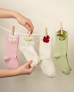 Diese weiße Socke besteht aus einer weichen Mischung aus Bio-Baumwolle, Polyamid und Elasthan. Am Bund ist ein fröhliches rotes Marienkäfer-Motiv, das der Socke eine verspielte Note gibt. Die Socke ist für Jungen und Mädchen geeignet und dadurch praktisch für den Alltag. Durch den angenehmen Stoff sitzt die Socke beim Tragen gut.