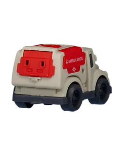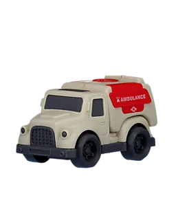 Dieser Spielzeug-Lkw ist aus robustem Kunststoff gefertigt und hat ein weißes Fahrgestell mit schwarzen Rädern. An der Seite befindet sich ein rotes Feld mit dem Wort Ambulanz und einem Symbol. Durch das handliche Format lässt sich der Lkw gut greifen und bewegen. Geeignet zum Spielen und leicht zu reinigen. Hergestellt aus 100% Kunststoff.