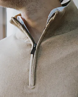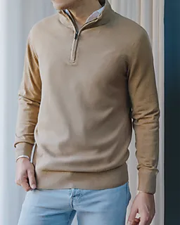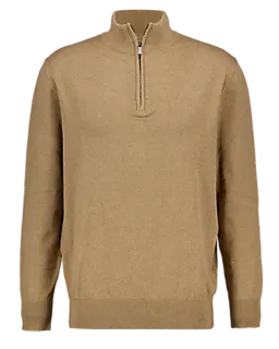 Dieser braune Herren-Sweater hat einen halblangen Reißverschluss sowie einen Stehkragen. So kannst du selbst entscheiden, wie warm du es haben möchtest. Der Stoff ist eine Mischung aus Baumwolle und Polyamid, was für ein weiches, komfortables Tragegefühl sorgt. Dank der langen Ärmel und geraden Abschlüsse sitzt der Sweater gut. Durch seine schlichte Farbe lässt er sich leicht kombinieren.