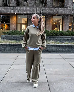 Dieser grüne Damenpullover hat einen Rundhalsausschnitt und lange Ärmel. Die Bündchen an den Ärmeln und am Saum sind leicht elastisch, sodass der Pullover gut sitzt und angenehm trägt. Durch die lockere Passform kannst du dich gut bewegen. Die einfarbige Farbe lässt sich einfach kombinieren, zum Beispiel mit einer Jeans oder einem Rock. Dieser Pullover ist geeignet für den täglichen Komfort zu Hause oder draußen.