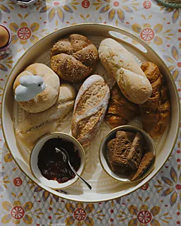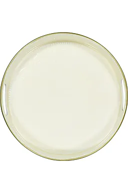Dieses beige Tablett ist rund und hat einen kleinen Rand, damit Tassen oder kleine Schälchen gut stehen. Mit einer Größe von 36 mal 36 Zentimetern kannst du alles auf einmal auf den Tisch stellen. Die neutrale Farbe sorgt für ein ruhiges Aussehen, sodass du das Tablett gut mit verschiedenen Service kombinieren kannst.