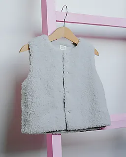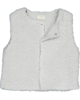 Diese graue Weste für Babys ist aus weichem Coral Fleece mit einer wolligen Struktur gemacht. Das ärmellose Modell wird vorne mit Druckknöpfen geschlossen. Durch den weichen Stoff fühlt sich die Weste angenehm auf der Haut an. Ideal zum Tragen über einem Shirt oder Body an kühleren Tagen für extra Wärme.