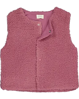 Diese lila Weste für Babys ist aus weichem Fleecestoff gemacht. Das ärmellose Modell hat vorne einen festen Druckknopfverschluss. Der Stoff fühlt sich warm und angenehm an, damit Babys bequem sitzen. Durch die einfarbige Optik wirkt die Weste ruhig und lässt sich gut mit anderer Kleidung kombinieren.