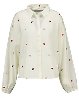 Diese weiße Damenbluse besteht aus Viskose und Polyester, wodurch der Stoff schön fließend fällt und sich weich anfühlt. Die Bluse hat lange Ärmel und wird vorne mit Knöpfen geschlossen, sodass du sie leicht anziehen kannst. Durch die kleinen Herzchen in Rot, Schwarz und Hellgrau bekommt die Bluse einen verspielten Look. Der Kragen sorgt dafür, dass du die Bluse sowohl lässig als auch elegant tragen kannst.