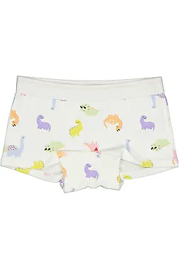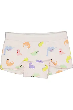 Dieses Set aus zwei Mädchen-Boxershorts besteht aus einer weißen und einer hellrosafarbenen mit einem Print fröhlicher farbiger Dinosaurier. Der weiche Stoff besteht aus Baumwolle und etwas Elasthan, wodurch sich die Boxershorts angenehm anfühlen und leicht nachgeben. Dank des elastischen Bundes bleiben sie beim Tragen gut an ihrem Platz.