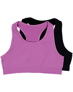 Set von 2 Crop-Tops in den Farben Violett und Schwarz. Die Crop-Tops sind nahtlos, wodurch sie sich bequem unter der Kleidung tragen lassen. Durch den hohen Schnitt und die breiten Träger bleiben sie gut sitzen. Der Stoff aus Polyamid und Elasthan sorgt dafür, dass die Tops leicht dehnbar sind und sich angenehm anfühlen.