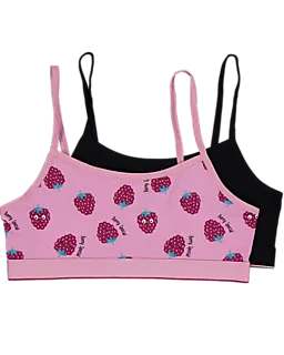 Dieses Set enthält zwei Crop-Tops für Mädchen. Das eine ist schwarz, das andere rosa mit einem Himbeer-Print. Die schmalen Träger und der gerade Ausschnitt sorgen für eine bequeme Passform. Durch den weichen Stoff aus 95 % Baumwolle und 5 % Elasthan liegen die Tops gut an und passen sich deinem Körper gut an.