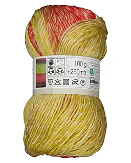 Dieses Gracia-Strickgarn hat Gelb- und Rottöne. Ein Knäuel von 100 Gramm enthält 260 Meter Garn, sodass du genug für größere oder mehrere Projekte hast. Am besten strickst oder häkelst du dieses Garn mit Nadeln von 4 mm. Eine Maschenprobe von 10 x 10 cm ergibt 22 Maschen und 29 Reihen. Hast du vielleicht ein Knäuel zu viel gekauft? Dann komm innerhalb eines Jahres mit dem Kaufbeleg wieder. Du bekommst dann problemlos dein Geld zurück.