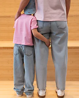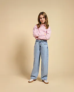 Diese blaue Mädchenhose ist aus Denim mit Baumwolle gemacht. Dadurch ist der Stoff fest und fühlt sich angenehm an. Die geraden, weiten Beine geben genug Bewegungsfreiheit. Die lange Hose hat Vorder- und Gesäßtaschen, in denen kleine Dinge gut mitgenommen werden können. Der Knopf- und Reißverschluss sorgt dafür, dass die Hose leicht anzuziehen ist und den ganzen Tag gut sitzt.