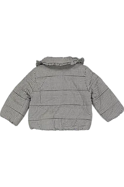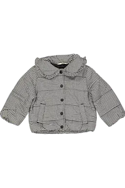 Diese Mädchenjacke mit Hahnentritt-Print hat einen klassischen Kragen und wird vorne mit Knöpfen geschlossen. Die Jacke besteht aus einem weichen Oberstoff aus Viskose und Polyamid und ist komplett gefüttert. Durch die Wattierung hält sie dich schön warm, sodass du sie draußen gut tragen kannst. In den Eingrifftaschen kannst du bequem deine Hände warm halten oder etwas Kleines mitnehmen.