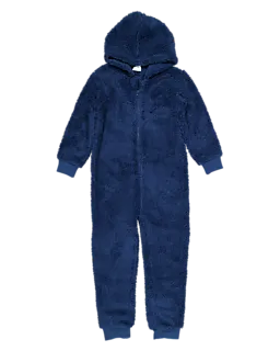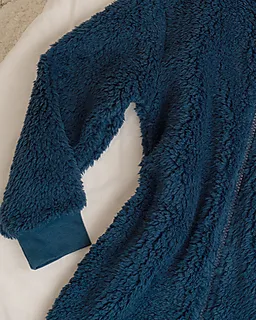 Dieser dunkelblaue Onesie ist aus Coral Fleece gemacht und fühlt sich weich und warm an. Der Onesie hat eine Kapuze und lange Ärmel, sodass du gut bedeckt bist. Der Reißverschluss vorne macht das An- und Ausziehen einfach. Die Bündchen an Ärmeln und Beinen liegen angenehm an, damit du bequem entspannen kannst.