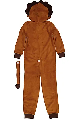 Dieser braune Onesie ist aus weichem Fleece gemacht. So hält er an kälteren Tagen warm. Die Kapuze hat ein Löwengesicht und eine Mähne. Hinten ist ein kleiner Schwanz. Dank des Reißverschlusses lässt sich der Onesie leicht an- und ausziehen. So bist du schnell bereit zum Entspannen oder Spielen.