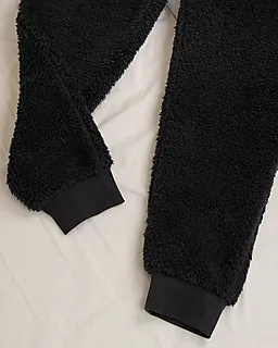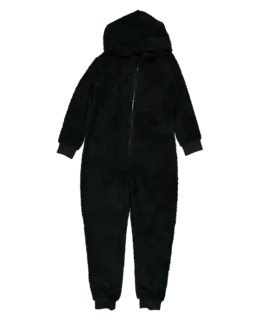 Dieser schwarze Onesie besteht aus 100% Polyester und hat einen weichen Coral-Fleece-Stoff. Dadurch fühlt er sich angenehm an. Die Kapuze und die langen Ärmel sorgen dafür, dass deinem Kind schnell warm wird. Durch den Reißverschluss vorne lässt sich der Onesie einfach an- und ausziehen. Die Bündchen an Ärmeln und Beinen liegen gut an, so bleibt die Wärme besser erhalten.