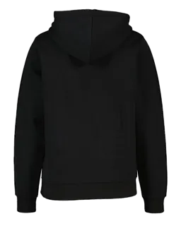 Dieser schwarze Damen-Hoodie hat eine Kapuze mit Kordelzug und lange Ärmel, sodass er sich leicht anpassen lässt und sich angenehm trägt. Der weiche Stoff aus Polyester und Baumwolle fühlt sich angenehm an. Die Säume an den Ärmeln und am unteren Rand sind mit Rippstrick verarbeitet, sodass sie gut anliegen. Dank der schlichten Farbe lässt sich dieser Hoodie leicht mit einer Jeans oder Sporthose kombinieren.