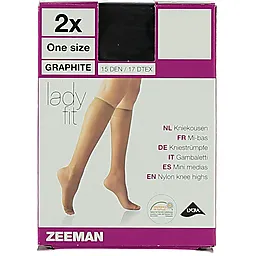 Dieses Set enthält zwei Paar graue Kniestrümpfe. Der dünne Stoff mit 15 Denier fühlt sich leicht an, wodurch sich deine Beine luftig anfühlen. Durch den Einsatz von Polyamid und Elasthan sind die Kniestrümpfe geschmeidig und dehnbar, sodass sie angenehm anliegen. Du kannst diese Kniestrümpfe unauffällig unter einer Hose oder einem Rock tragen.