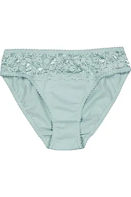 Dieses Set besteht aus zwei Maya-Slips für Damen in Grün und Weiß. Sie bestehen aus Baumwolle, und am oberen Rand verläuft eine Spitzenbordüre. Der Stoff fühlt sich weich an und ist atmungsaktiv, damit du dich wohlfühlst. Dank des elastischen Bundes schließen die Slips gut an und bleiben unter deiner Kleidung sicher an ihrem Platz.