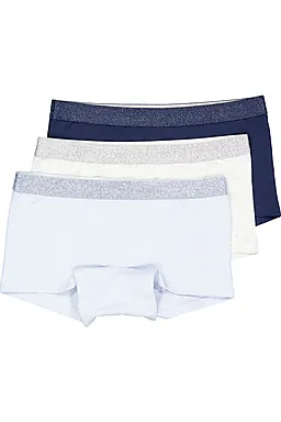 Diese Nancy-Boxershorts für Mädchen sind im 3er-Set erhältlich und haben die Farben Hellblau, Weiß und Dunkelblau. Der weiche, glatte Stoff enthält Baumwolle mit etwas Elasthan, wodurch die Boxershorts bequem sitzen und leicht nachgeben. Der elastische Bund liegt angenehm an, sodass alles gut an seinem Platz bleibt.