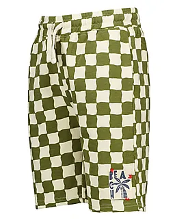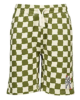 Diese grüne Jungenshorts hat ein Karomuster in Grün und Weiß. Der elastische Bund mit Kordelzug dehnt sich gut, sodass du die Shorts leicht anziehst und sie gut sitzt. Die kurzen Hosenbeine geben dir viel Bewegungsfreiheit, was beim Spielen angenehm ist. Unten ist ein kleiner Aufdruck für einen sommerlichen, spielerischen Look.