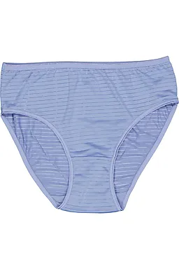 Dieses Set besteht aus zwei violetten Damenslips mit Streifen. Die Slips sind aus glattem Polyester und Elasthan, sodass der Stoff leicht dehnbar ist und gut sitzt. Der breite, elastische Bund sorgt dafür, dass der Slip an seinem Platz bleibt.
