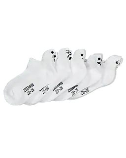 Diese weißen Sneakersocken für Jungen und Mädchen kommen in einem Set mit fünf. Die niedrige Passform sitzt gut dank der weichen Mischung aus Baumwolle, Polyester und etwas Elasthan, wodurch die Socken leicht mitdehnen. Der schlichte Stil passt zu jedem Tag. Die glatte Verarbeitung fühlt sich angenehm an, damit deine Füße den ganzen Tag bequem bleiben.