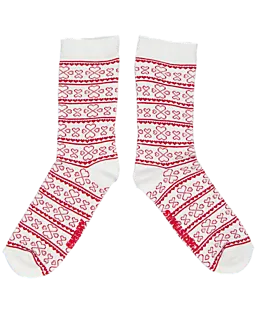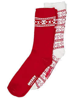 Dieses Set enthält zwei Paar Damensocken mit auffälligen Weihnachtsmotiven. Ein Paar ist rot mit einem Herzchenmuster am Bund. Das andere Paar ist weiß mit einem Allover-Herzchenmuster. Da die Socken etwas länger sind, halten sie deine Knöchel gut warm.