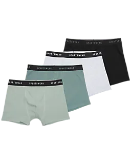 Dieses Set besteht aus vier Sportswear-Boxershorts für Herren in den Farben hellgrün, schwarz, hellgrau und dunkelgrün. Der weiche Stoff besteht aus Baumwolle mit etwas Elasthan, wodurch die Boxershorts strapazierfähig und leicht nachgeben. Der elastische Bund sorgt dafür, dass sie gut sitzen bleiben, sodass du sie gut unter verschiedenen Hosen tragen kannst.