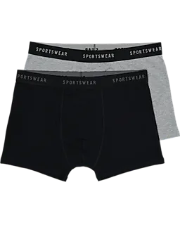 Dieses Set besteht aus zwei Sportswear-Herrenboxers in Schwarz und Grau. Der elastische Bund dehnt sich mit, damit die Boxers gut sitzen. Der weiche Stoff aus Baumwolle, Polyester und Elasthan fühlt sich angenehm auf deiner Haut an, sodass du sie den ganzen Tag gut tragen kannst.
