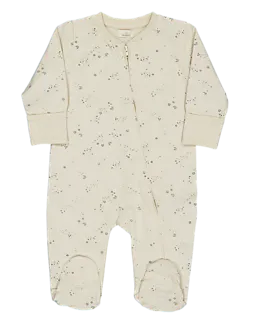 Dieser beigefarbene Baby-Strampler hat lange Ärmel und Beine mit Füßchen. Er ist aus weichem Single-Jersey gefertigt und hat ein dezentes Allover-Muster, ohne auffällige Prints oder Schriftzüge. Dank des praktischen Verschlusses an der Vorderseite kannst du den Strampler ganz einfach an- und ausziehen. Ideal für den Alltag dank der bequemen Passform und des geschmeidigen Materials.