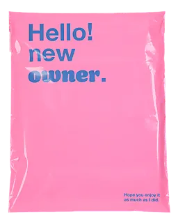 Diese rosa Versandtaschen gibt es im 10er-Set. Auf der Vorderseite steht der Text 'Hello! new owner.' Die Tasche ist einfarbig und hat eine glänzende Oberfläche, sodass deine Bestellung gut auffällt. Das Format von 30 mal 42 Zentimetern bietet genug Platz für verschiedene Arten von Kleidung oder kleine Artikel. So bleibt der Inhalt beim Versand ordentlich und geschützt.