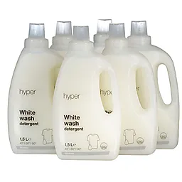 Das Hyper-Waschmittel eignet sich für weiße Wäsche und ist besonders günstig, weil wir es in großen Mengen herstellen lassen. Die Kappe ist verschließbar und dient zugleich als Dosierkappe. Das sorgt für eine saubere Dosierung des Waschmittels ohne zu kleckern. Eine Flasche reicht für etwa 20 Waschgänge. Erhältlich im 6er-Pack à 1,5 l. Der angezeigte Preis gilt pro Flasche.