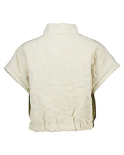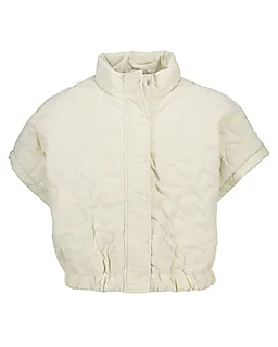 Diese beigefarbene Weste für Mädchen hat einen Stehkragen und kurze Ärmel. Der leicht wattierte Stoff fühlt sich angenehm an und sorgt für zusätzlichen Komfort, wenn es etwas kühler ist. Der untere Rand ist mit einem Gummizug versehen, sodass die Weste gut sitzt. Der Verschluss an der Vorderseite ist verdeckt, damit die Vorderseite ordentlich aussieht. Du kannst sie einfach über ein T-Shirt tragen.