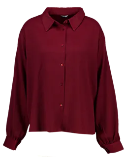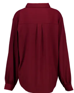 Esta blusa para mujer tiene un color rojo intenso y está hecha de un 98% de poliéster reciclado y un 2% de elastano. La blusa tiene cuello, mangas largas con cierre de botón en los puños y una fila de botones en la parte delantera. El tejido suave ofrece un ajuste cómodo. El diseño sencillo hace que esta blusa sea adecuada para diferentes ocasiones.