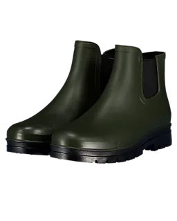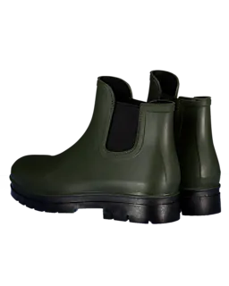 Estas botas de lluvia verdes para mujer tienen una caña lisa con una pieza elástica a cada lado, para que te las puedas poner y quitar fácilmente. La suela resistente ofrece buen agarre en superficies mojadas, para que puedas caminar con seguridad. Las botas llegan por encima del tobillo, así que mantienen los pies bien protegidos en días de lluvia.