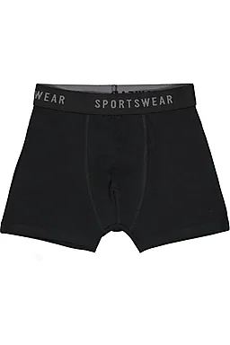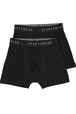 Estos bóxers de color negro para niño están confeccionados en algodón con un pequeño porcentaje de elastán, lo que hace que el tejido sea suave al tacto y tenga un ligero toque elástico. La cinturilla ancha lleva la palabra SPORTSWEAR y garantiza un ajuste firme y cómodo. Gracias a su color liso, estos bóxers son muy fáciles de combinar. Vienen en un pack de dos unidades, por lo que siempre tendrás un bóxer de repuesto a mano.