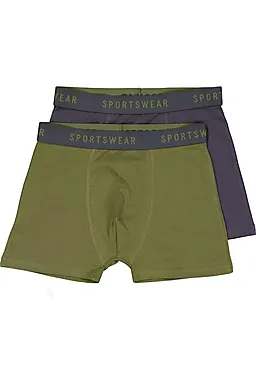 Este pack incluye dos bóxers para niño en los colores verde y gris oscuro. La cinturilla ancha, con la palabra ‘SPORTSWEAR’, es elástica y se ajusta muy bien al cuerpo para mantener los bóxers en su sitio durante todo el día. El tejido es suave y elástico, con algodón, y resulta muy agradable al contacto con la piel.