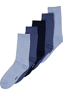 Este juego de cinco calcetines para hombre viene en varios tonos de azul. Están hechos de algodón, poliéster y elastano, por lo que se sienten suaves y ceden un poco. El tejido flexible se adapta bien al pie, para que los calcetines se mantengan en su sitio dentro del zapato.