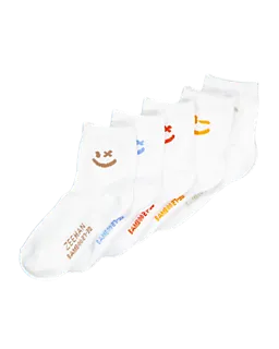 Pack de 5 calcetines blancos para niños y niñas. Los calcetines tienen un detalle alegre y acentos de color, lo que hace que sean fáciles de reconocer. Están hechos de 72% viscosa de bambú, 26% poliéster reciclado y 2% elastano. Esto les da un ajuste suave y flexible y mayor comodidad. Adecuados para el uso diario.