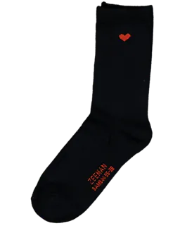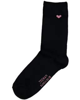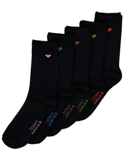 Este set de cinco calcetines negros está hecho de algodón, poliéster y elastano. Gracias al tejido suave y ligeramente elástico, los calcetines son cómodos y se ajustan bien. Cada par tiene un pequeño corazón de color en el lateral. Son aptos para usar todos los días, tanto con zapatillas deportivas como con otros zapatos.