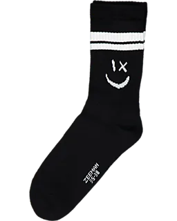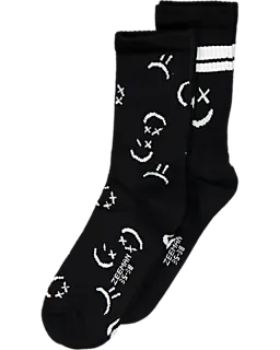 Estos calcetines negros para mujer están hechos de algodón, poliéster y un poco de elastano. Por eso resultan cómodos y tienen un poco de elasticidad. Las diferentes caritas blancas y las rayas les dan un toque divertido. Los bordes acanalados ajustan bien alrededor de los tobillos, así que los calcetines se mantienen en su sitio mientras los llevas puestos y son adecuados para el uso diario.