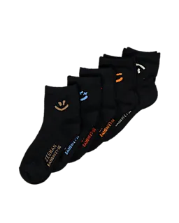 Estos calcetines negros para niños y niñas están hechos de un 72% de viscosa de bambú, un 26% de poliéster reciclado y un 2% de elastano. Gracias al uso de bambú, los calcetines se sienten especialmente suaves y absorben bien la humedad. El set incluye 5 pares con un detalle de color alegre. Así siempre tienes suficientes calcetines para el uso diario.