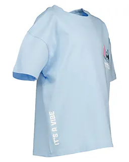 Esta camiseta azul claro es para niños y niñas. En el pecho ves a Stitch con detalles en rosa y azul, lo que le da a la prenda un aspecto alegre. El corte recto y el tejido suave resultan agradables al tacto, por lo que es cómoda de llevar. Las mangas cortas permiten moverse bien, así puedes jugar cómodamente o llevar la camiseta en los días calurosos.