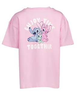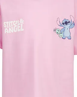 Esta camiseta rosa para niños y niñas tiene un cuello redondo y un corte holgado, lo que hace que caiga bien y sea cómoda de llevar. En el pecho pone ‘STITCH & ANGEL’ con una imagen alegre de Stitch. El tejido suave es agradable al tacto y permite moverse con comodidad. Por el color claro y el modelo corto, esta camiseta es agradable de llevar cuando hace más calor.