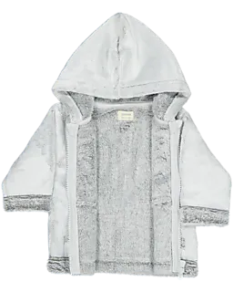 Esta chaqueta gris para bebés tiene un aspecto suave y está hecha de coral fleece. La chaqueta tiene capucha, mangas largas y cremallera en la parte delantera, por lo que es fácil de poner y quitar. Gracias a los bolsillos cosidos en la parte delantera puedes llevar pequeños objetos o mantener las manos calientes en los días frescos.